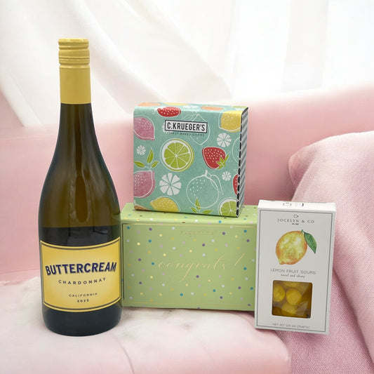 Buttercream Chardonnay w/Cookies & Congrats Candy Box
