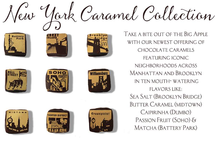 Take a bite out of the Big Apple with our newest collection of chocolate caramels! Packaged inside a whimsical inspired, New York-themed box, take in the aroma of dark chocolate while tasting the creamy smoothness of caramel through various, all natural flavors including passion fruit, lavender, dulce de leche, and/or coffee. Featuring iconic images of distinct neighborhoods across New York and Brooklyn, they're the perfect New York souvenir to transport you to the City That Never Sleeps in every bite.